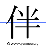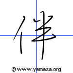 Kanji: 伴 Radical: 人 (ひと) | ||||